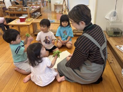 モンテッソーリの考えは、子どもは本来、自分の中に成長していこうとする生命力を持っており、適切な時期に、適切な環境が与えられれば、自分で成長するというものです。