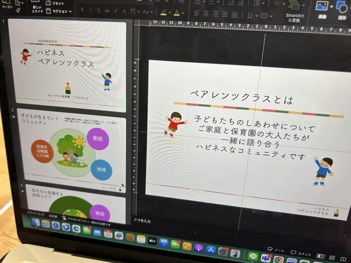 ハピネス保育園・こどものいえでは、在園児の保護者さんに向けた“ハピネス ペアレンツ クラス”という時間を設けています。