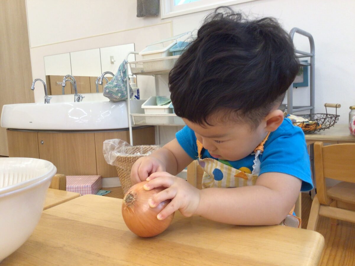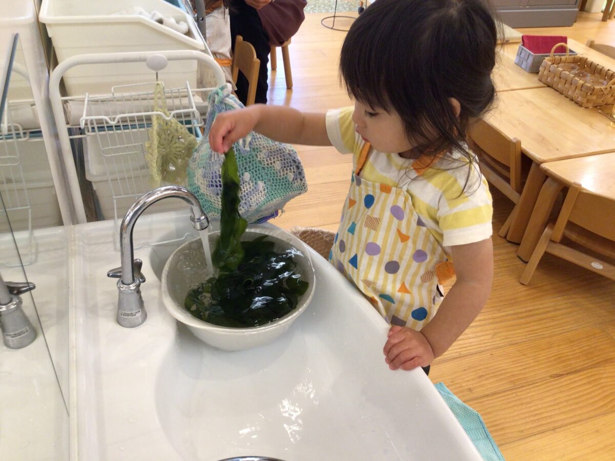 モンテッソーリ教育の基本理論と球根の図で表現される人の成長エネルギーについて、保育園の時期に最も重要とされる“日常生活の練習”とは、そして、その要素を紹介しました。日常生活の練習のなかでも、食周りの活動については特にたくさんの写真が紹介されていて、子どもたちの真剣な眼差し、全身を使って集中する姿、”自分でできた”と達成感に満ちた表情を保護者の皆さんにも感じてもらえたかなと思います。