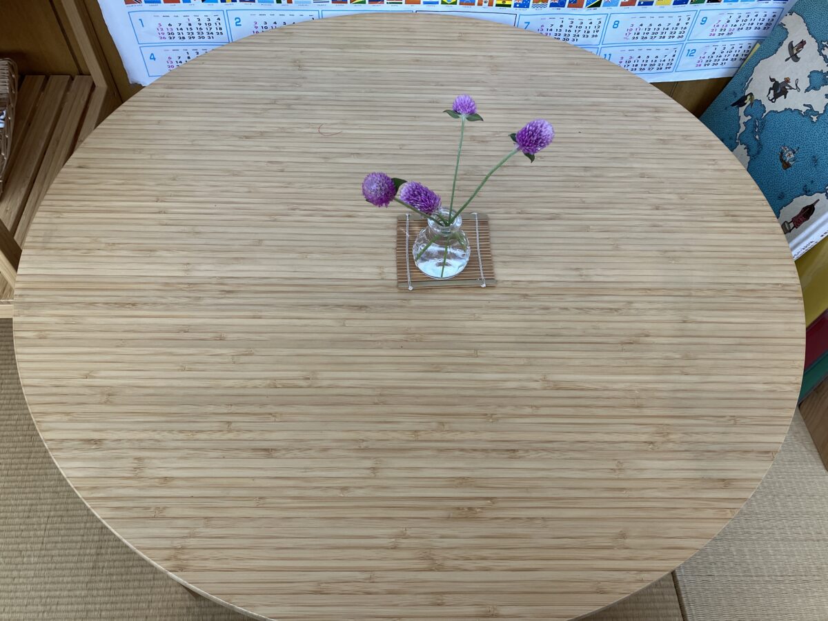 「BさんとCさん(保育者)が食べる時に見てね」と自分がいけた花を食卓に持ってきてくれました。