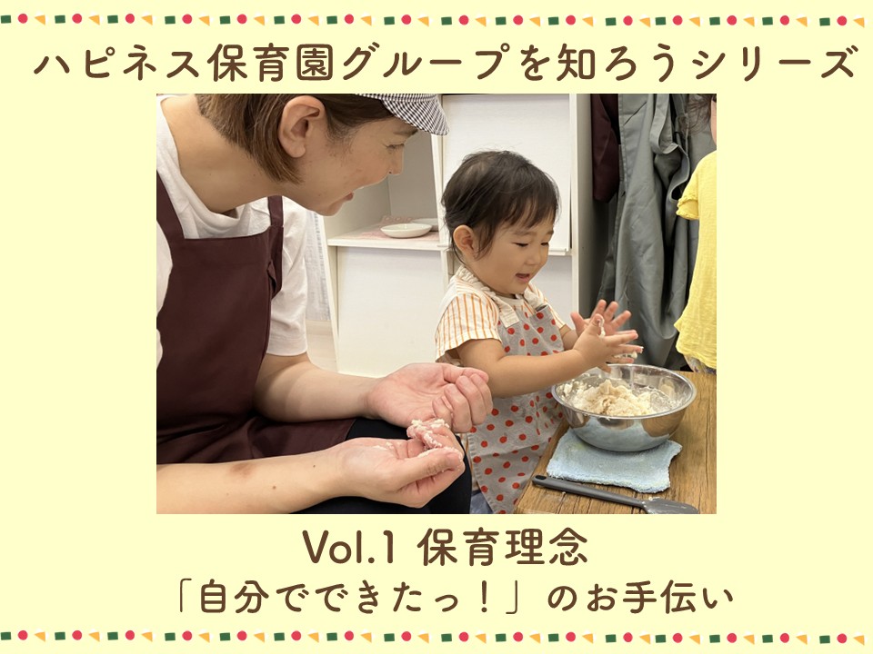 今回はハピネス保育園グループの保育理念「自分でできたっ」のお手伝いについて、