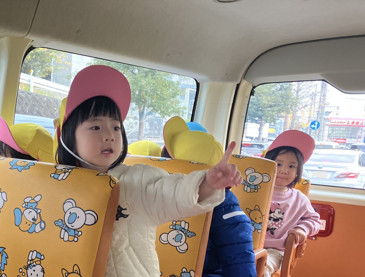 園バスの中では、毎日のように子どもたち発信の「あそび」が始まります。